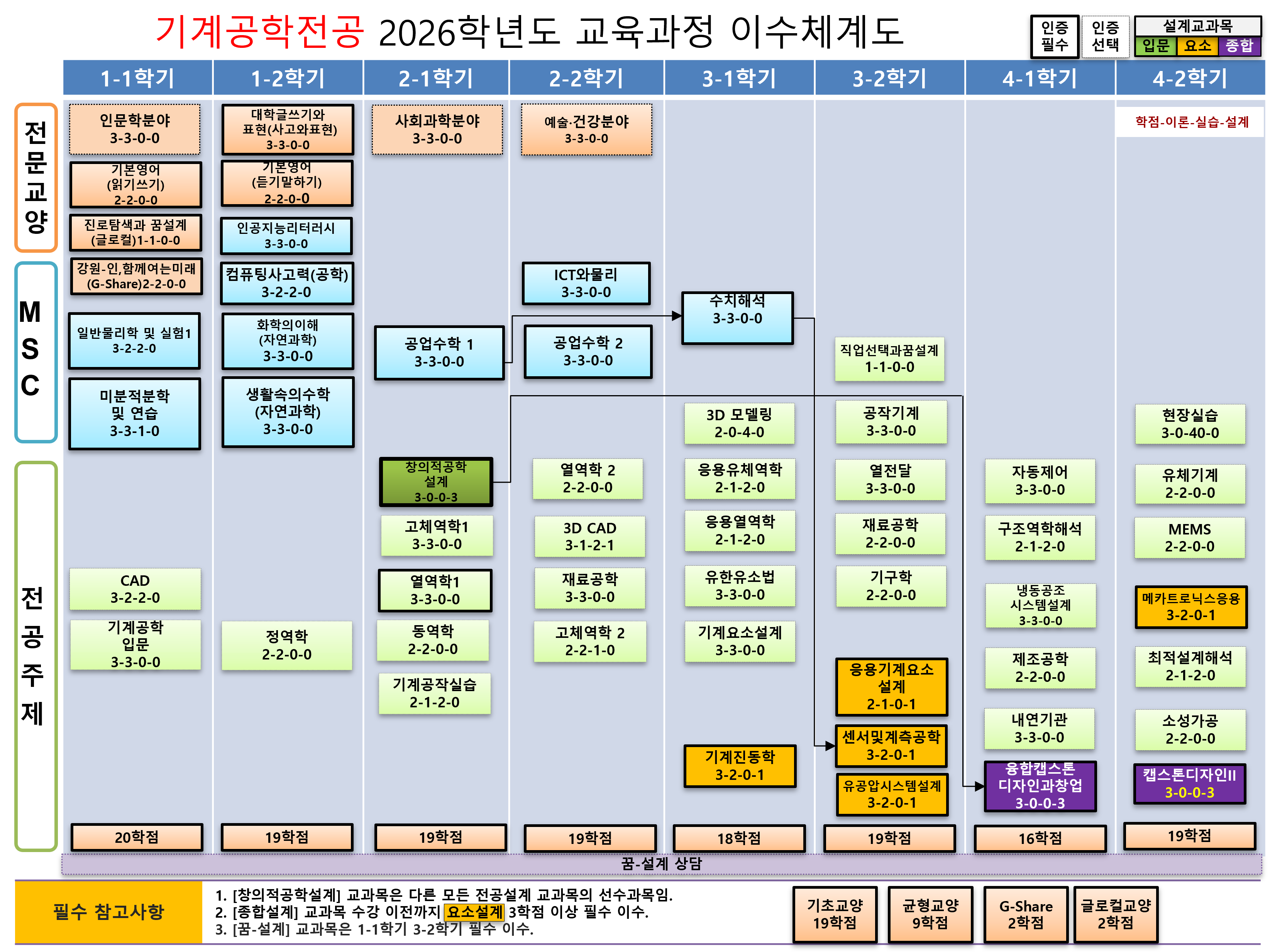 | MSC | 30학점 이상 이수 권장 (기초과학 또는 전산학 교과목 중 한과목 이상 실험이 포함된 교과목 이수) |